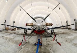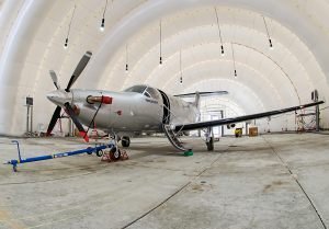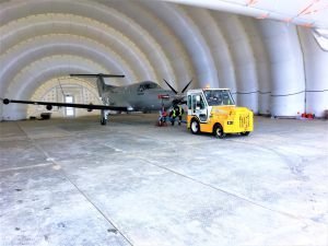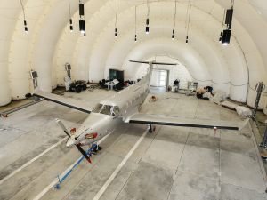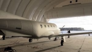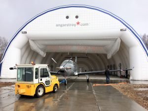 Inflatable structures are made of high quality non-combustible PVC, which meets all modern aviation standards in terms of fire redundancy. Additionally, the fire alarm system has increased the security level of the hangar. To ensure a safe and comfortable working environment for the personnel, Angarstroy has supplied additional components necessary for aircraft maintenance, including the ground power unit (GPU), heating system, cranes and tools.